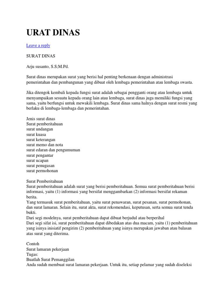 Berbagai Contoh Surat Dinas Yang Bisa Anda Gunakan