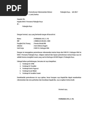 Contoh Surat Permohonan Mutasi Ikut Suami