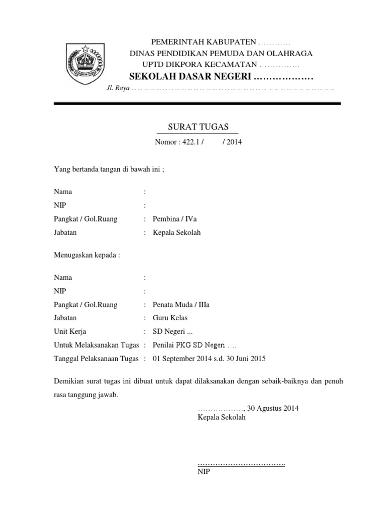 9 Contoh Surat Tugas Untuk Organisasi Perusahaan Guru Barang
