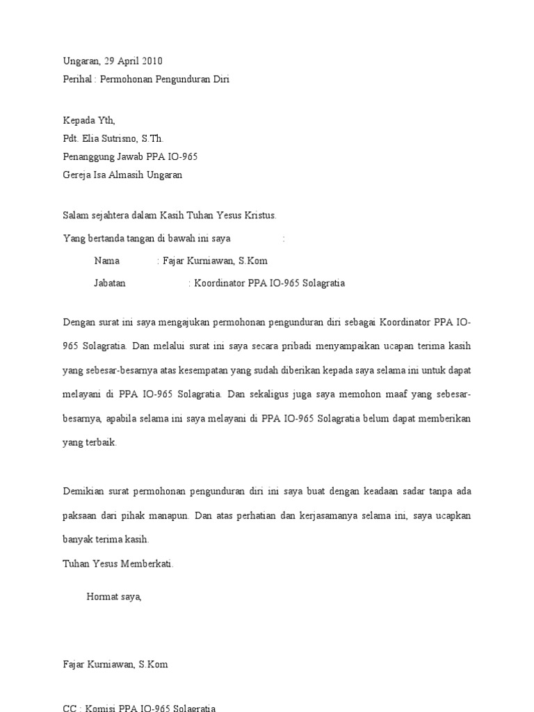 Contoh surat pengunduran diri hallo sobat sharingsetelah beberapa waktu lalu saya bahas soal contoh surat lamaran kerja kali ini saya akan sharing tentang contoh surat pengunduran diri contoh surat resign. Surat ini tidak hanya sekedar formalitas saja tetapi juga mencerminkan anda sebagai pegawai yang baik dan sopan.