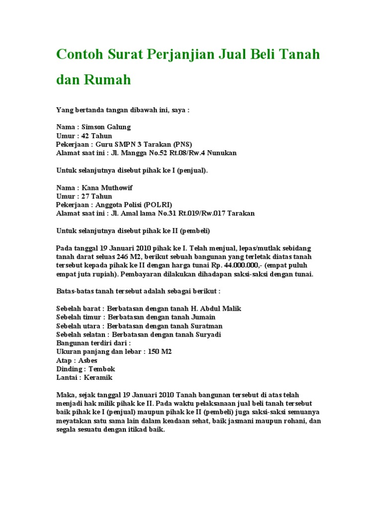 Surat Perjanjian Jual Beli Tanah Pdf Free Download