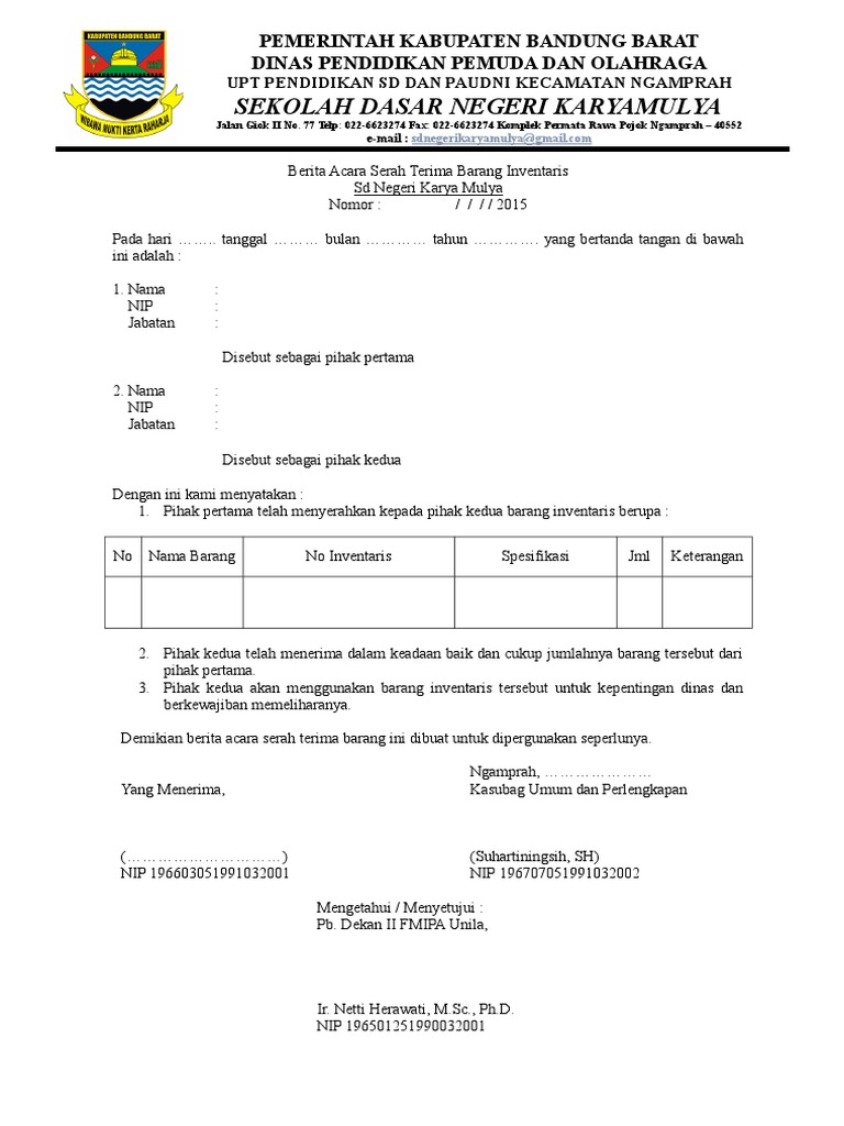 Contoh Berita Acara Serah Terima Inventaris Barang Sekolah 2