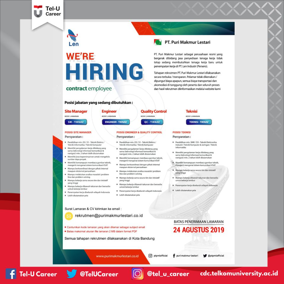 Tel U Career On Twitter Silakan Kirim Surat Lamaran Dan Cv Ke