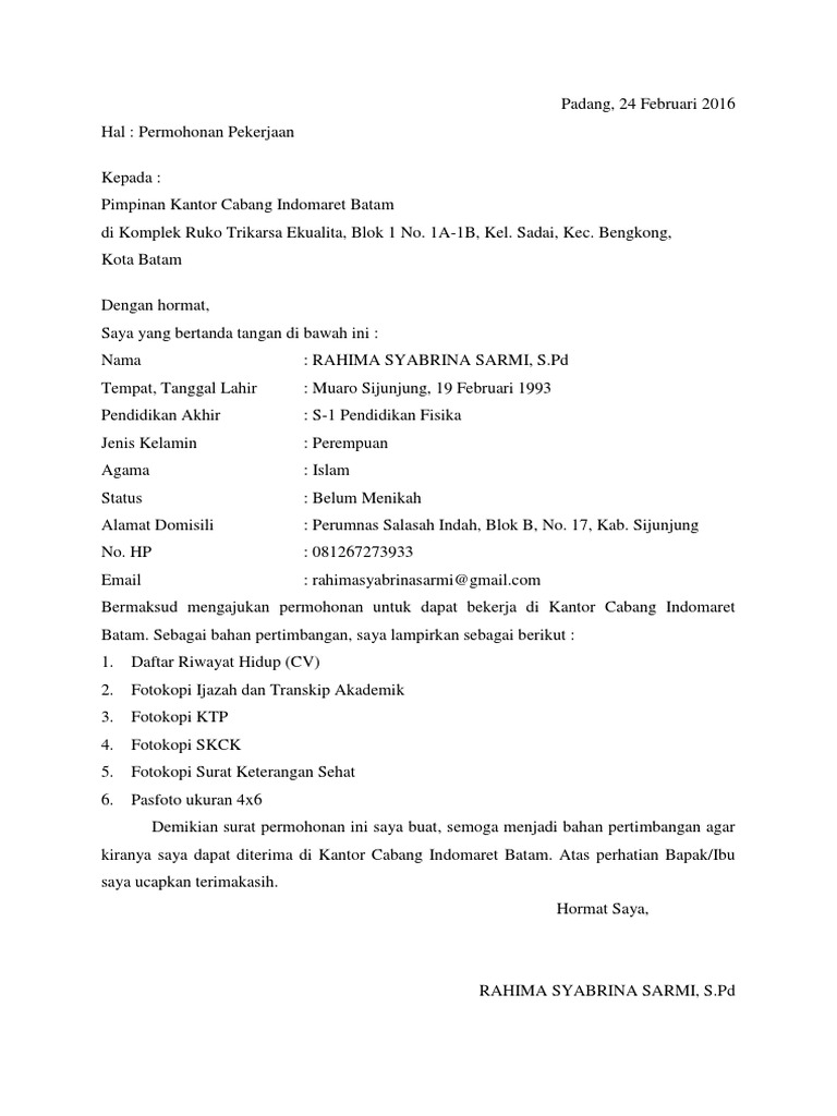 Contoh Surat Lamaran Kerja Indomaret Dan Alfamart Top Surat Terbaru
