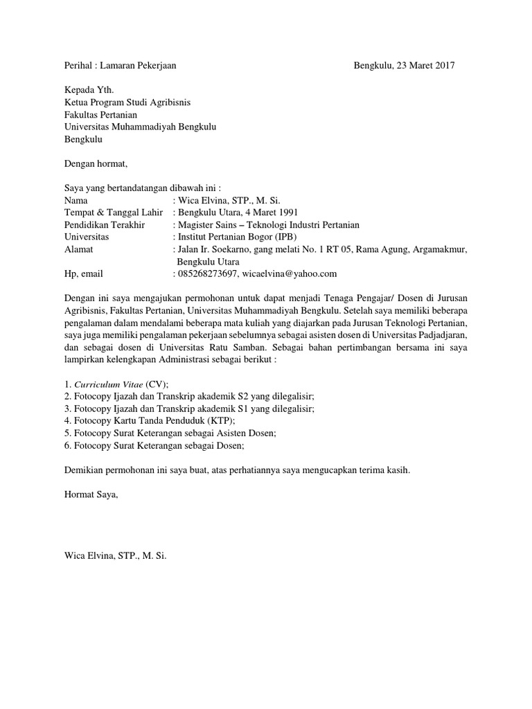 Download Contoh Surat Lamaran Kerja Menjadi Dosen Di Universitas