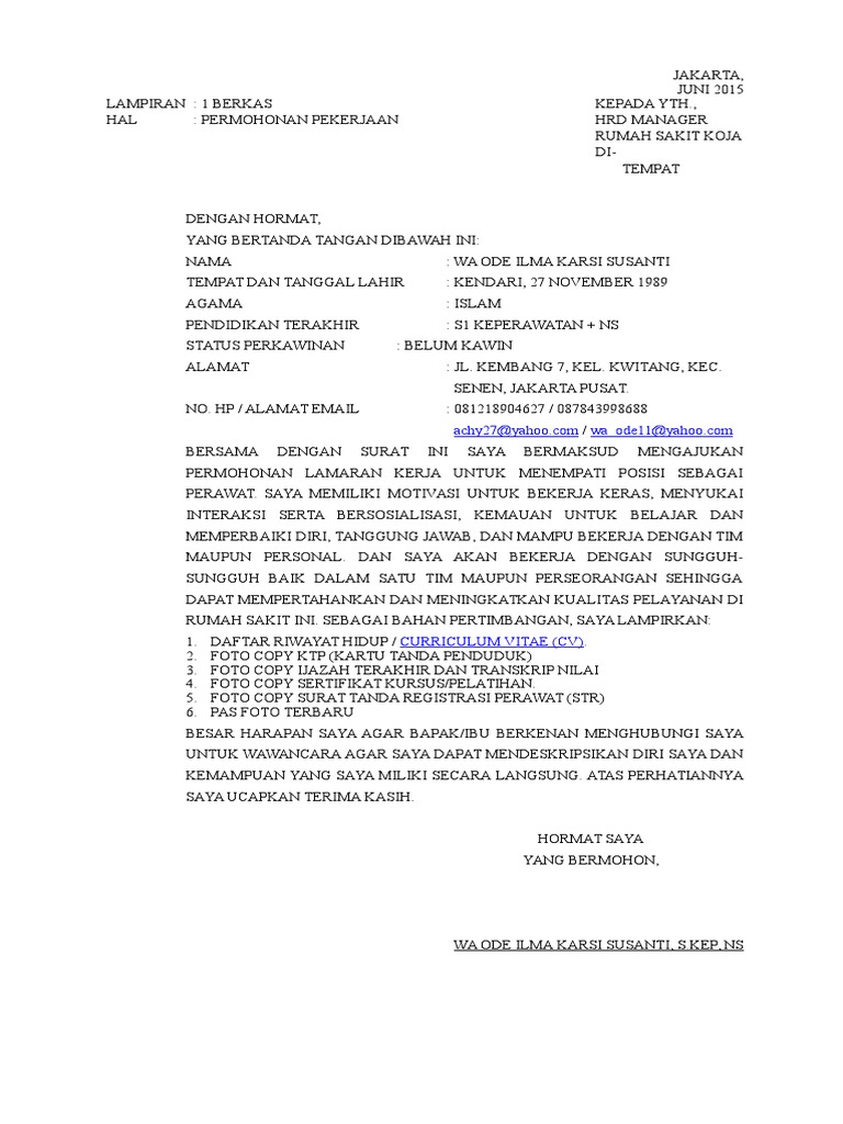 Contoh Surat Lamaran Kerja Di Rumah Sakit